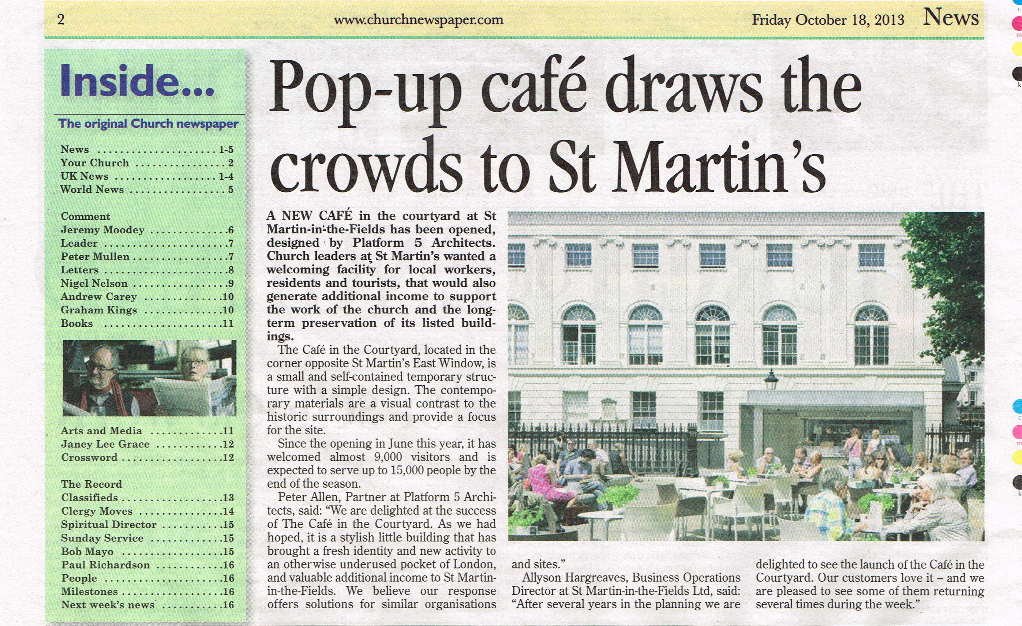 The Cafe in the Courtyard at St Martin-in-the-Fields has featured in the Church of England Newspaper.