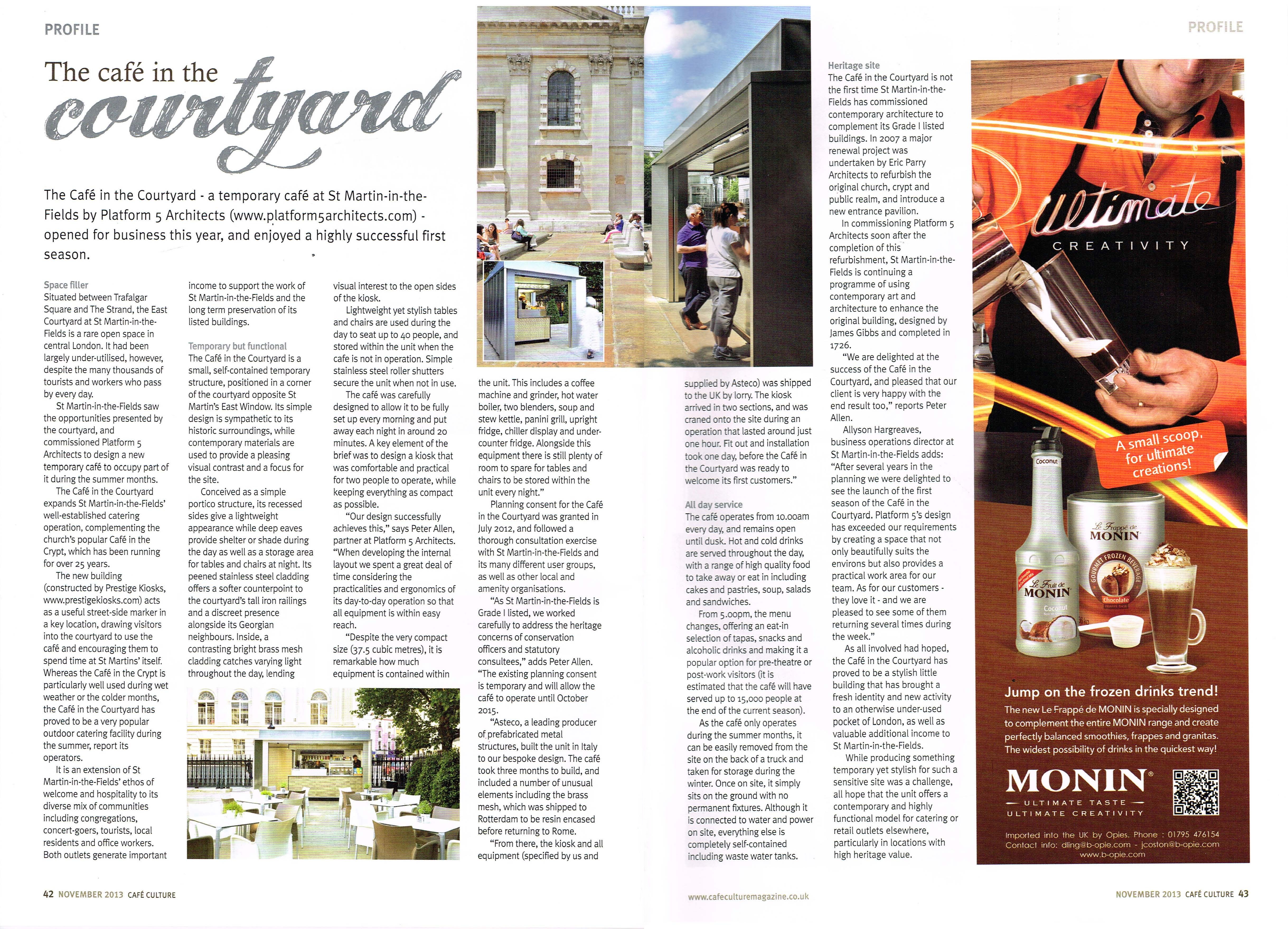 The Cafe in the Courtyard at St Martin-in-the-Fields has featured in the November edition of Cafe Culture.