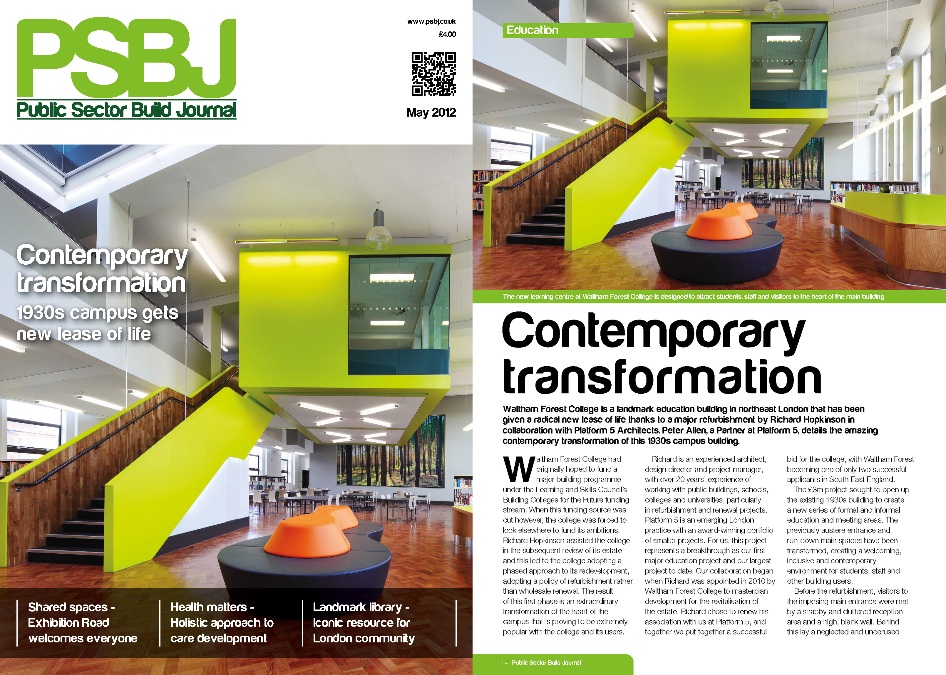 Waltham Forest College has featured in the May edition of Public Sector Build Journal